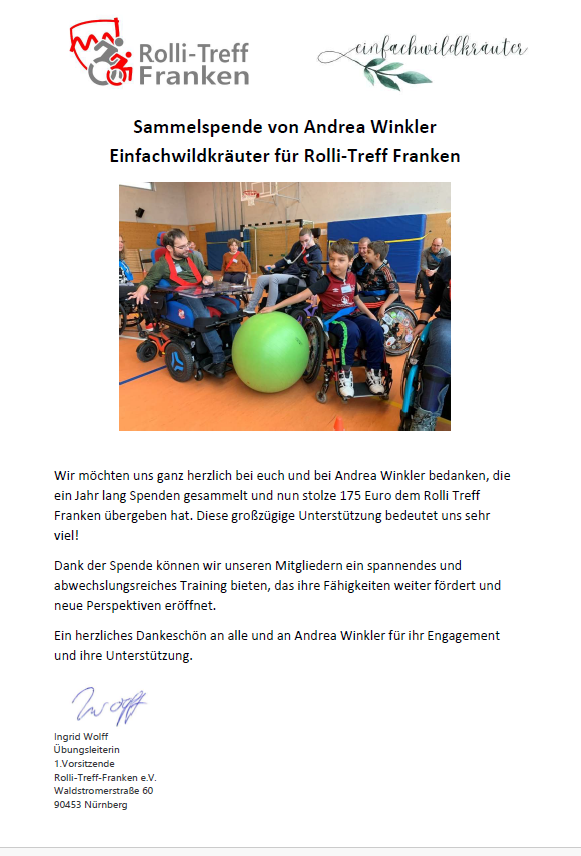 An den Rolli-Treff-Franken e.V. gingen 175,00 € und an den Wheelchairlights e.V. gingen 150,00 €.